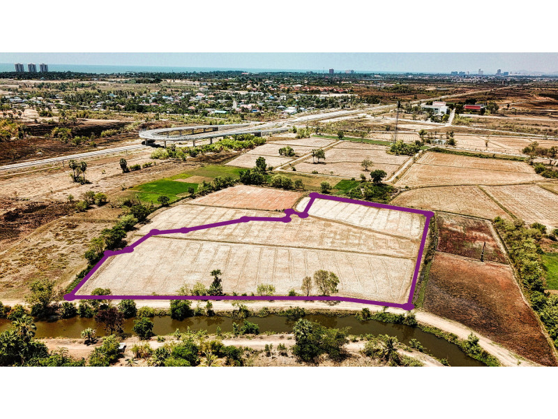 Introducing a scenic 9692 m² plot of land in the northern region of Cha-am, boasting stunning mountain views that provide a tranquil and serene atmosphere. This vast expanse of land is perfectly situated only 3,5 km away from the stunning Cha-am beach, 4,5 km from the lively Phetkasem highway, 10 minutes trip to the bustling centre of Cha-am town. This makes it the ideal investment opportunity for those seeking a combination of relaxation and excitement in Thailand's vibrant landscape.